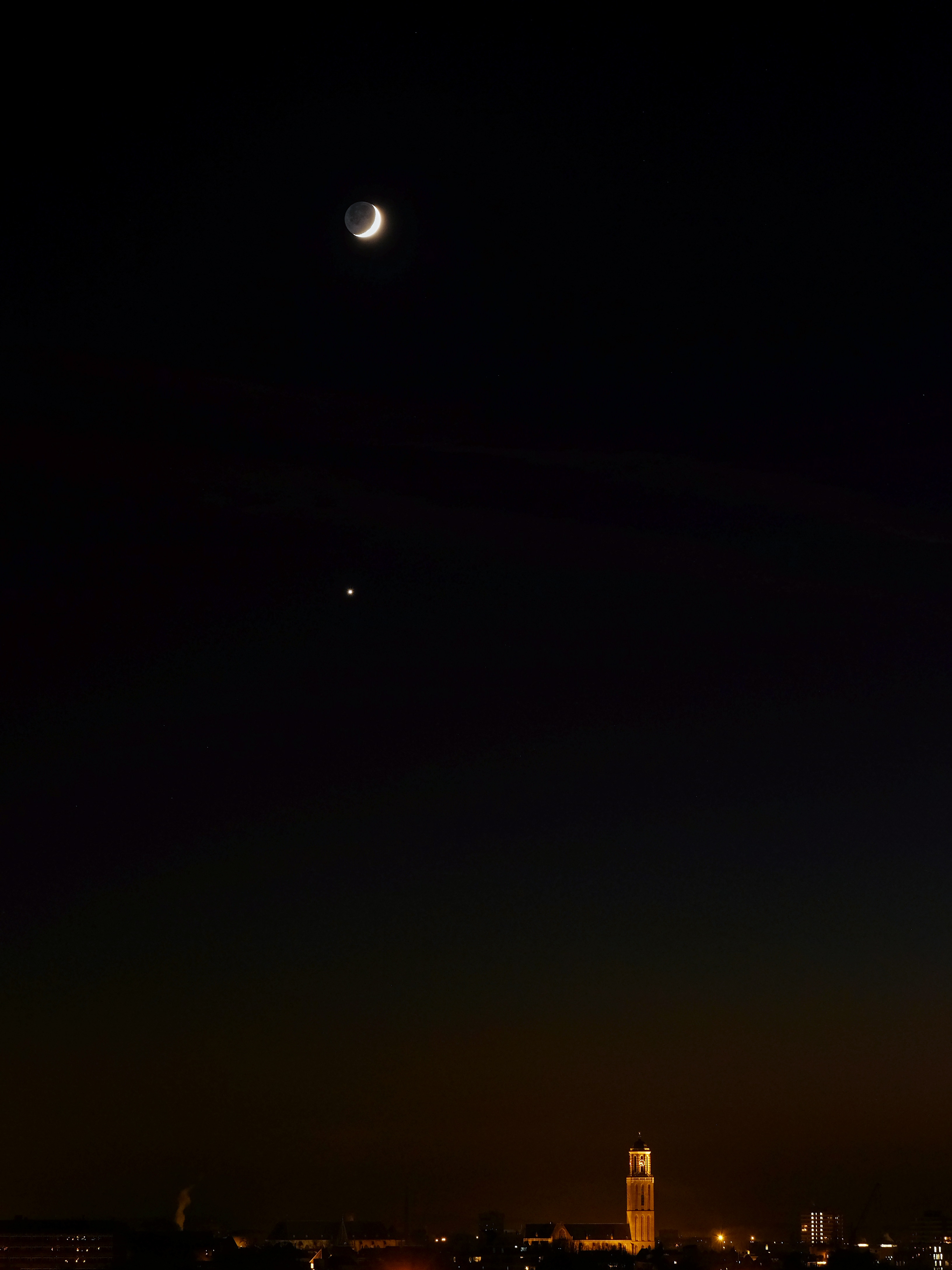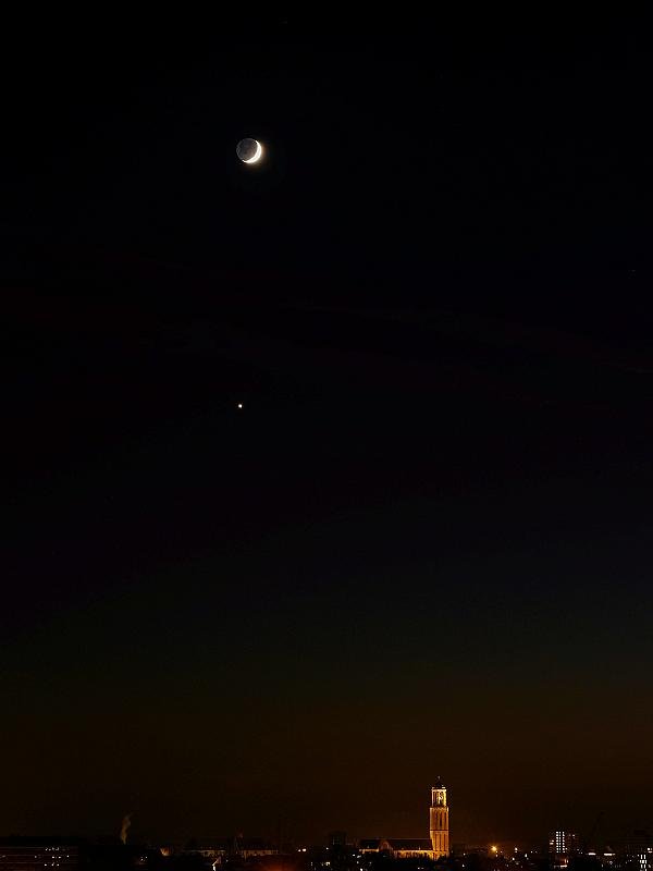 Maan en Venus boven Zwolle
