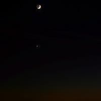 Foto is genomen op zaterdag 3 december 2016. Venus stond bijna recht onder de maan. De mooie schijngestalte (earthshine) van de maan was door het heldere weer goed zichtbaar.