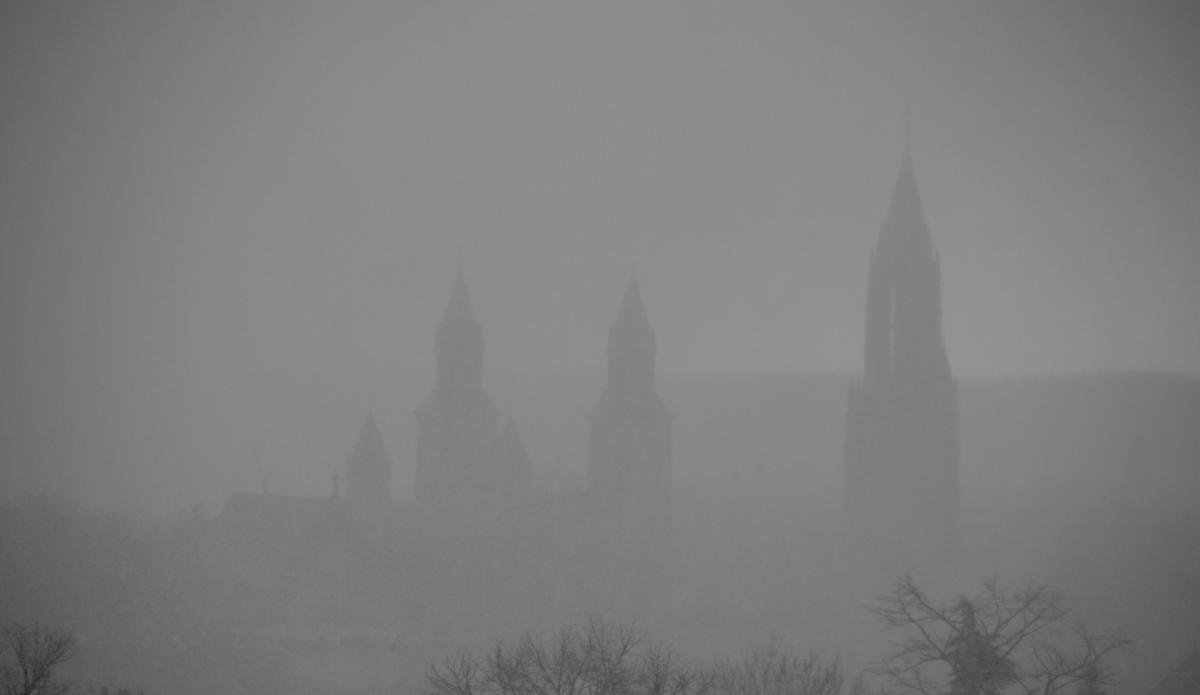Waar we wonen hebben we een mooi uitzicht op de kerktorens van Maastricht. Maar door een sneeuwstorm waren de toren nog slechts een silhouette.