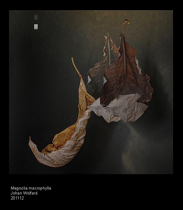tabletop- twee magnoliabladeren apart gefotografeerd en in PS en HDR gemaakt.