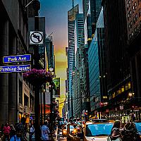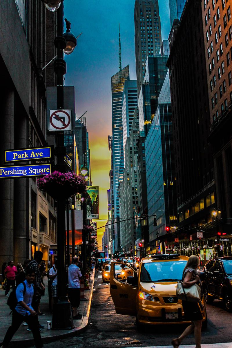 Halfjaarlijks verschijnsel waarbij de zonsondergang te zien is vanuit de oost-west gerichte straten van Manhattan New York