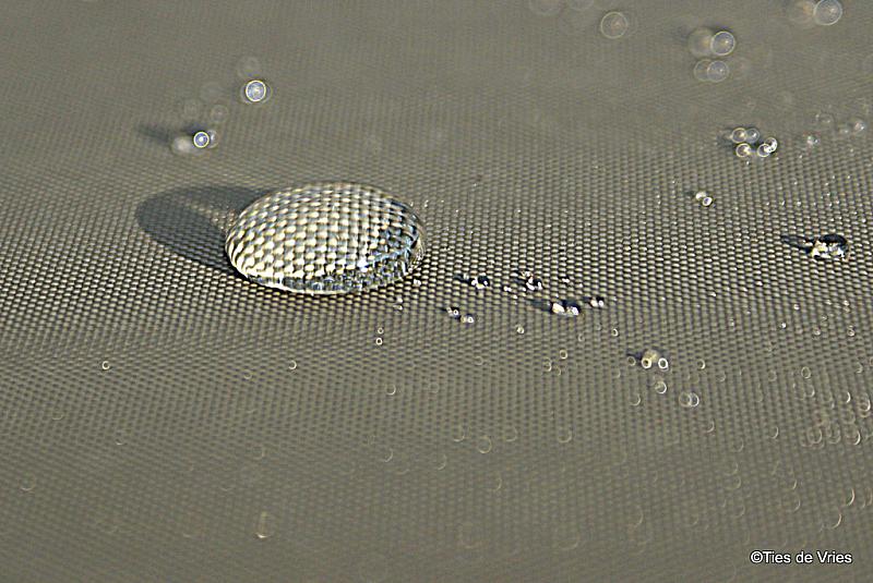 De weving van het doek wordt vergroot i de druppel