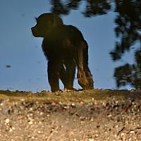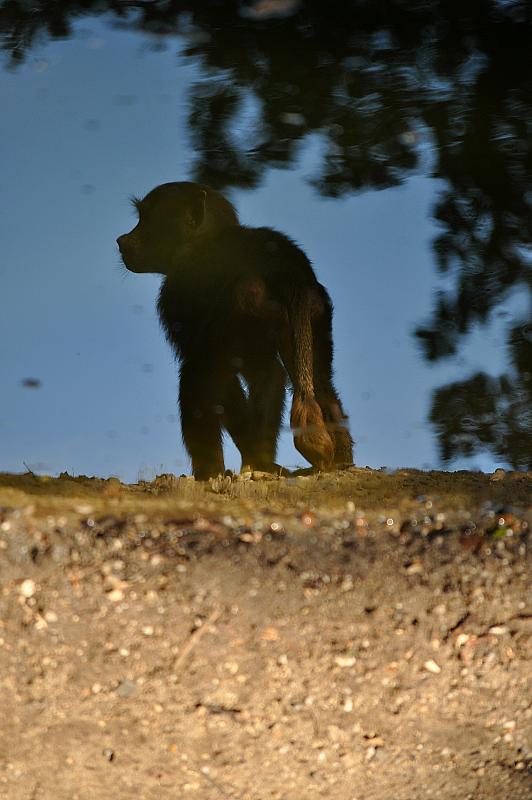Spiegeling van een mantelbaviaan in het water. De foto heb ik omgedraaid.