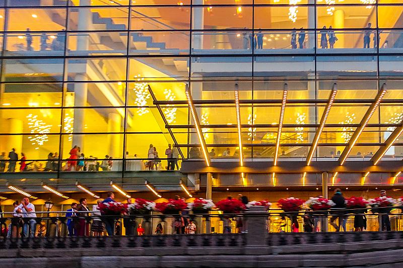 Opname vanaf rondvaartboot avondtour om 20.30 . Verrassend sfeervol door 1/13 sec bij geel kunstlicht
