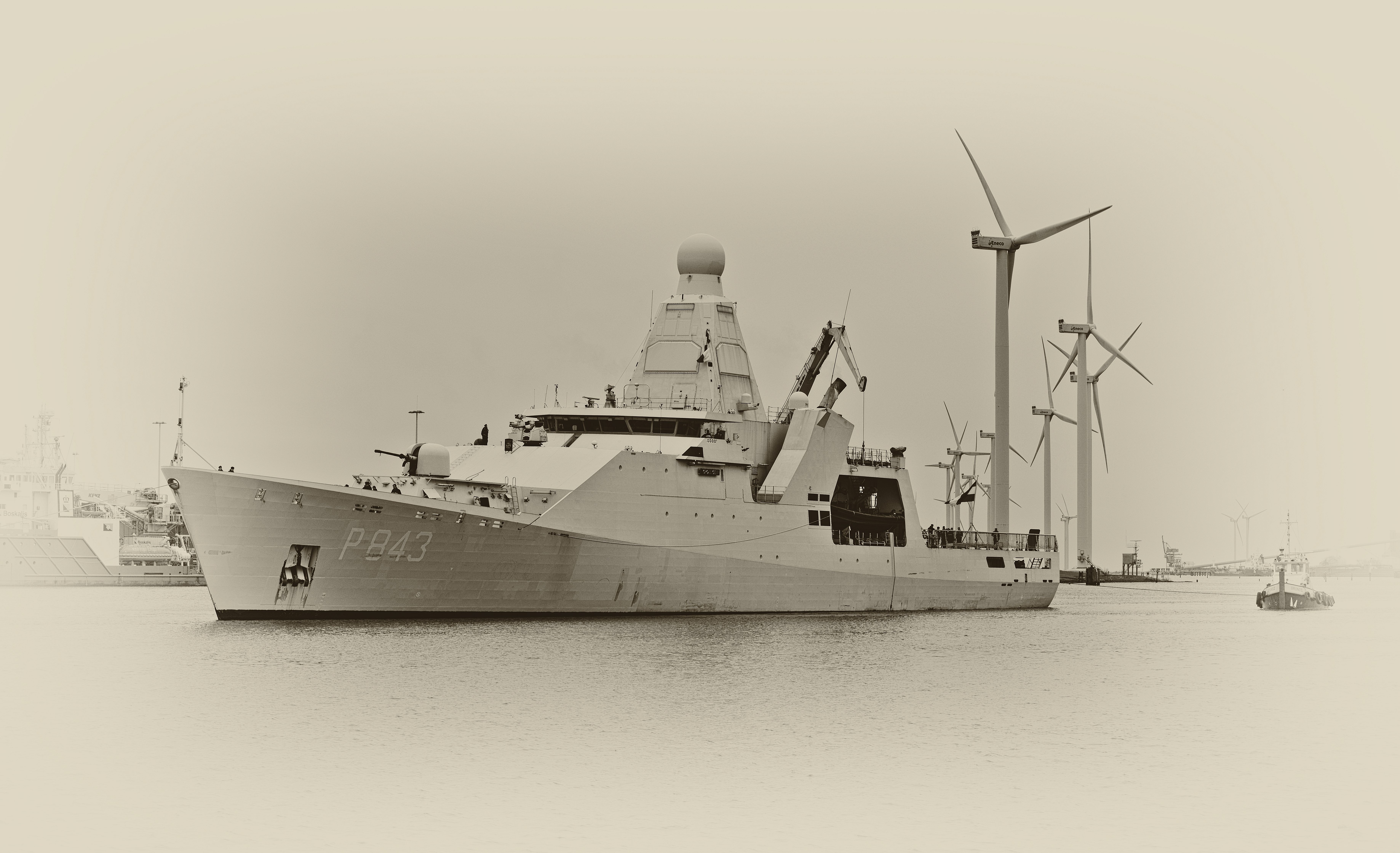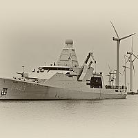 Vorige week vrijdag kwam dit marineschip aan in de haven van Delfzijl.