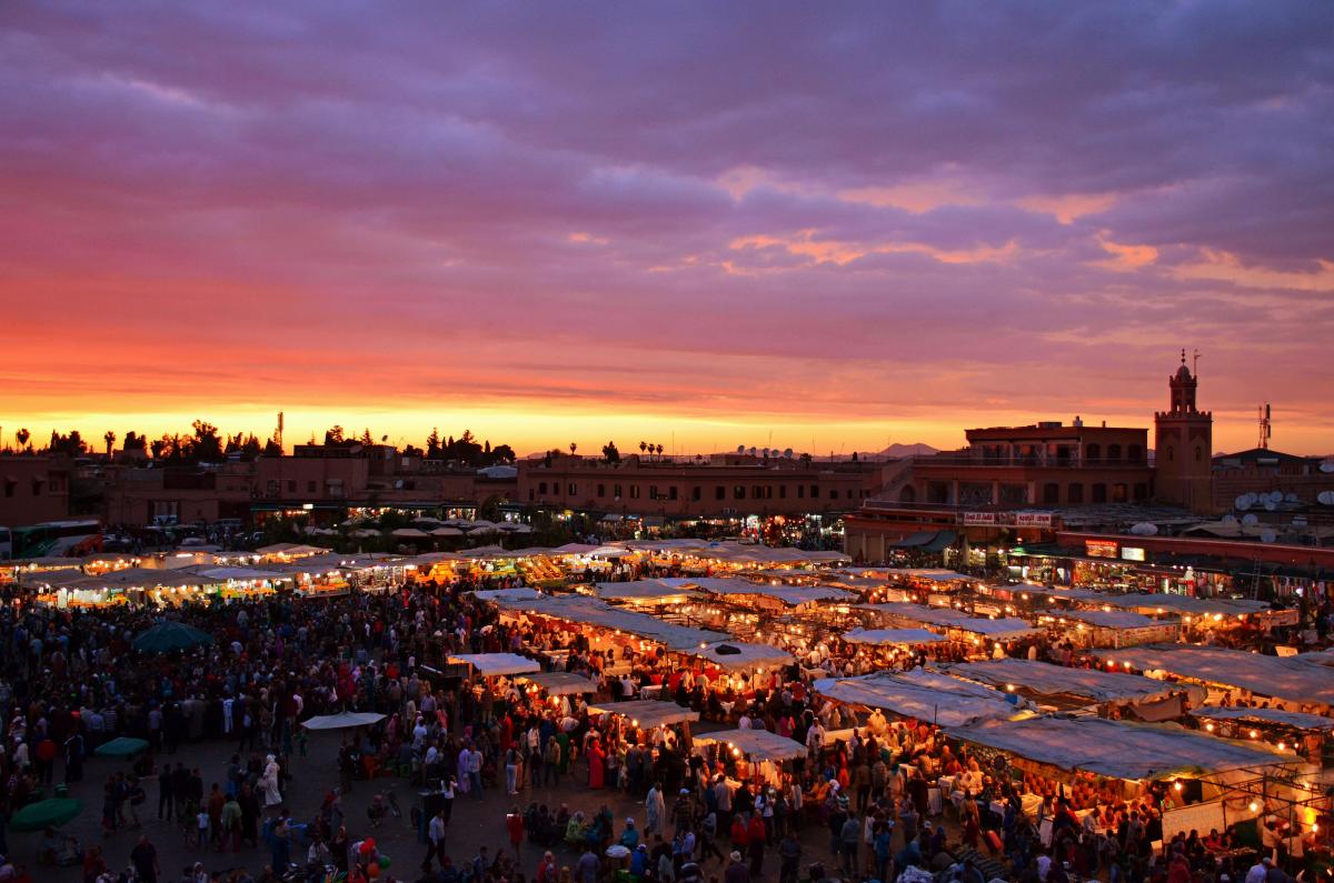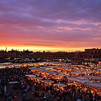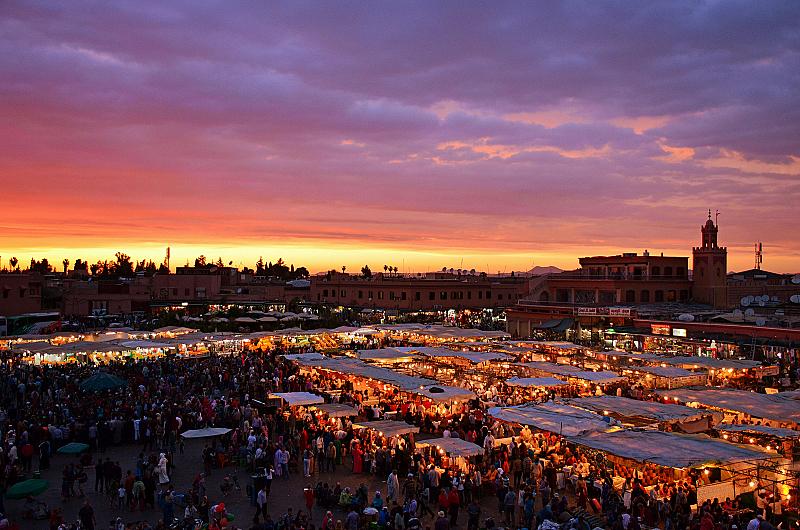 De beroemde place "Jemaa el Fna" in Marrakech, zeer populair bij toeristen.