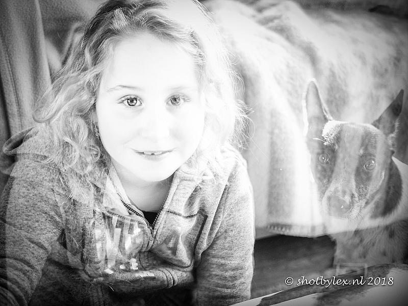 Een protret gemaakt met double exposure. Bij de tweede opname kwam de hond erbij kijken waardoor deze een geest lijkt.