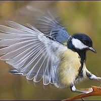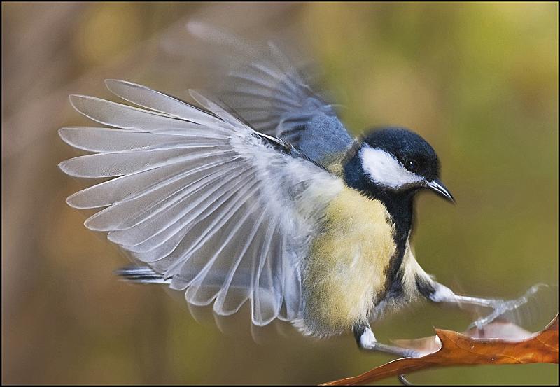 De mees landt op het blad van een eik (bos van Soignes/Belgie)