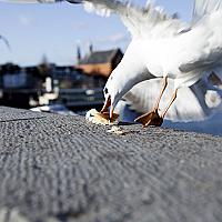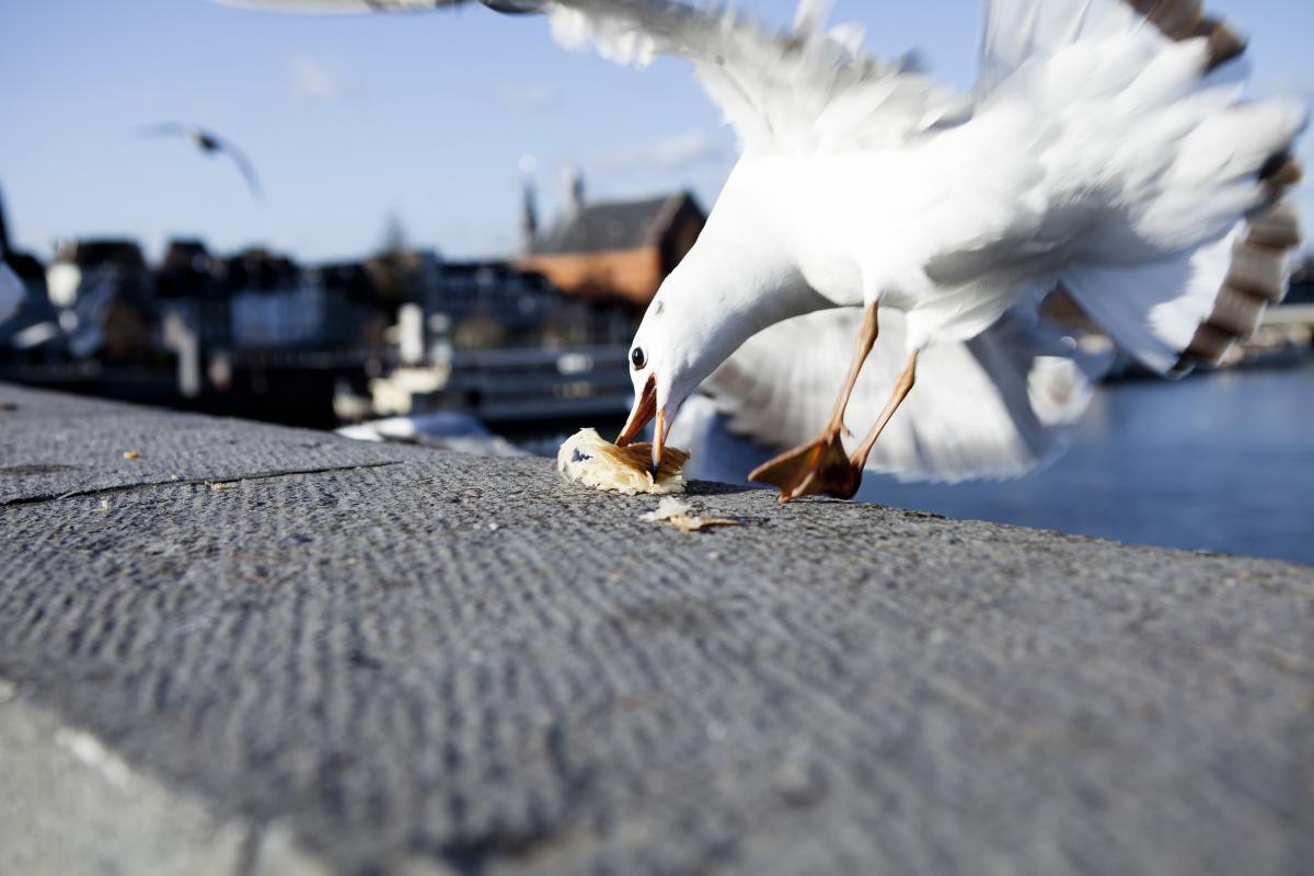 Ik heb een foto gemaakt van een meeuw die een stuk brood probeert te pakken. De scherpte + de beweging maakt de foto zo mooi. Voor mij gaat dan de aandacht uit naar de meeuw.