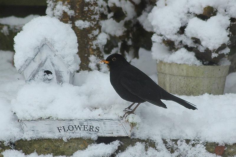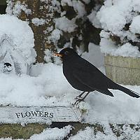 Merel zoekt wat lekkers op onder de sneeuw.
