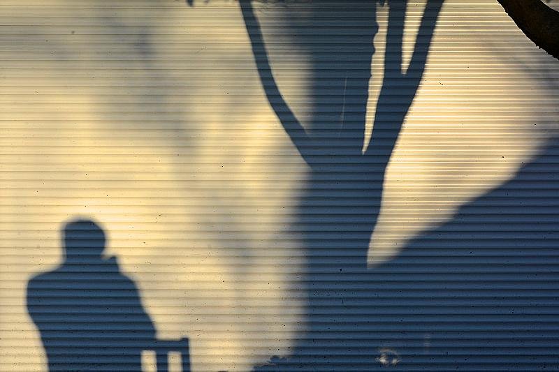 Zittend fotograferend in mijn achtertuin met de zon in mijn rug
