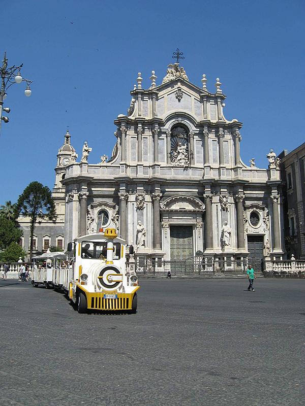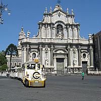 Met een treintje door de stad in Sicilië