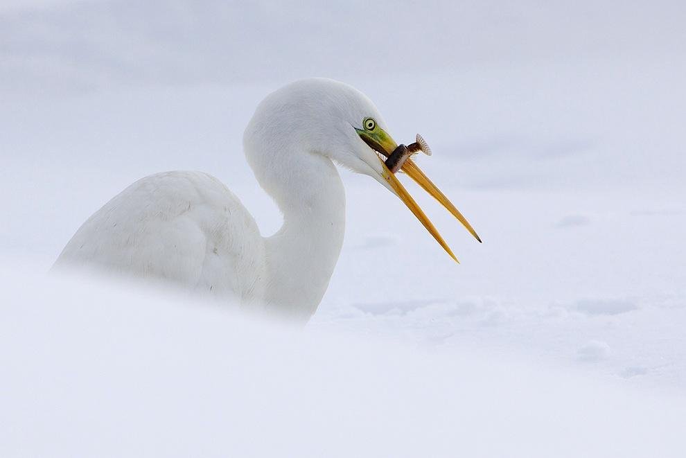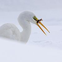 Grote Zilverreiger met een Modderkruiper.