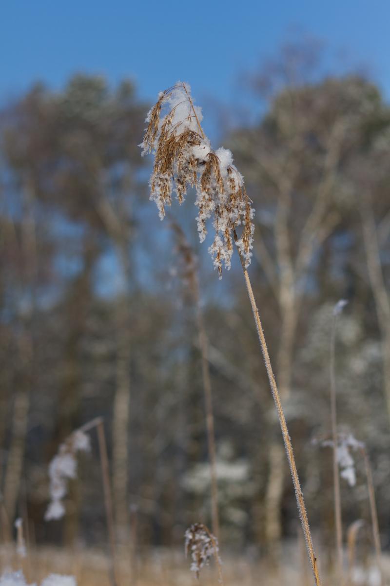 Deze met sneeuw bedekte rietstengel stak boven de andere rietstengels uit bij een vennetje in de buurt van Eindhoven.