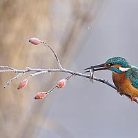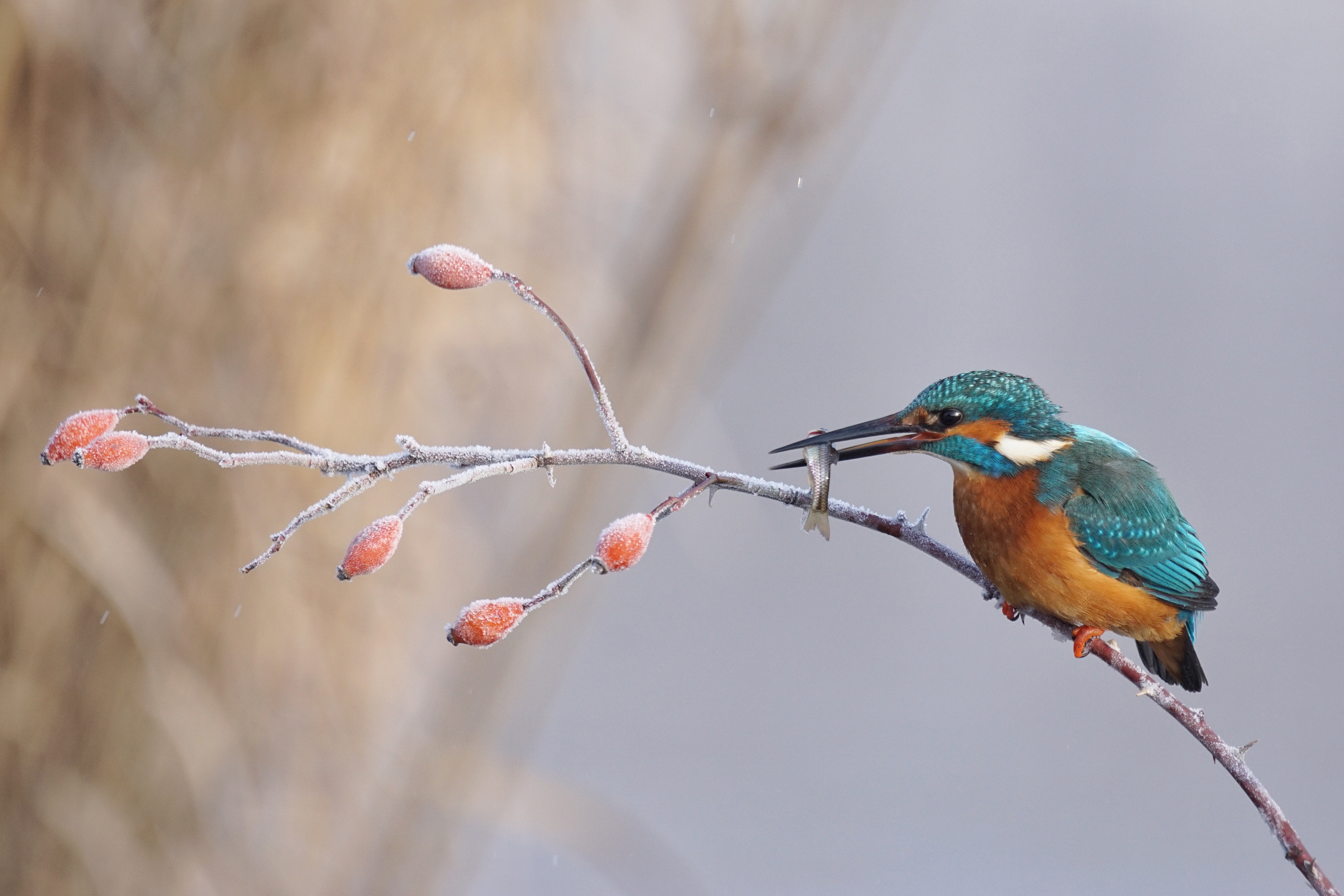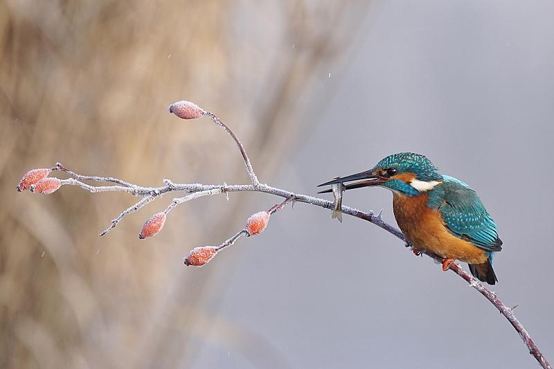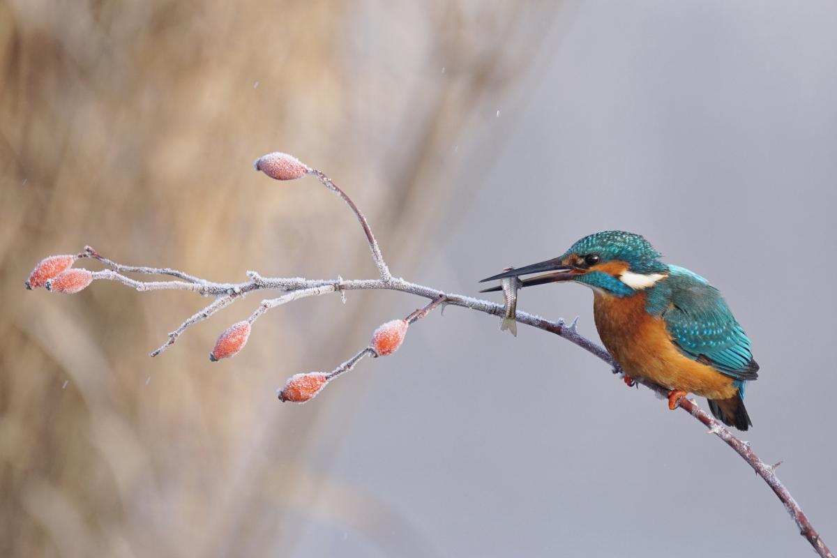 Foto genomen bij min 10 vanuit een schuiltent. De ijsvogel kon hier gelukkig gewoon vissen