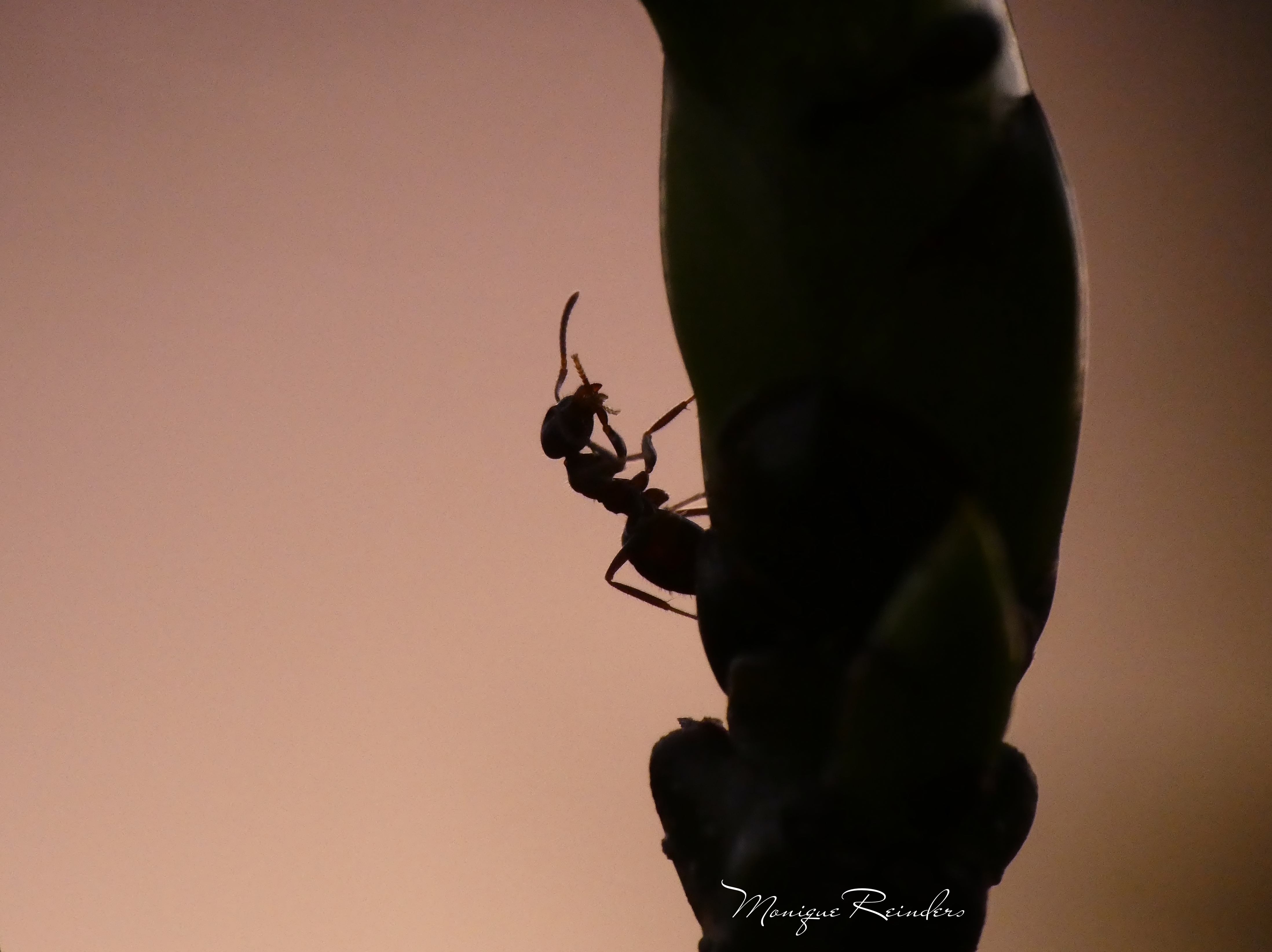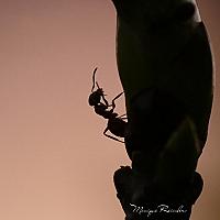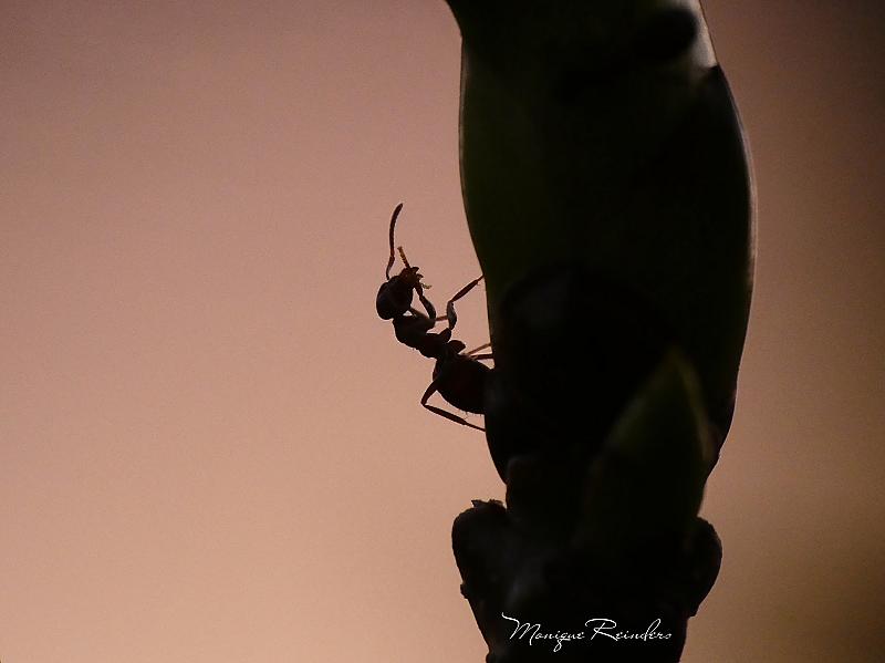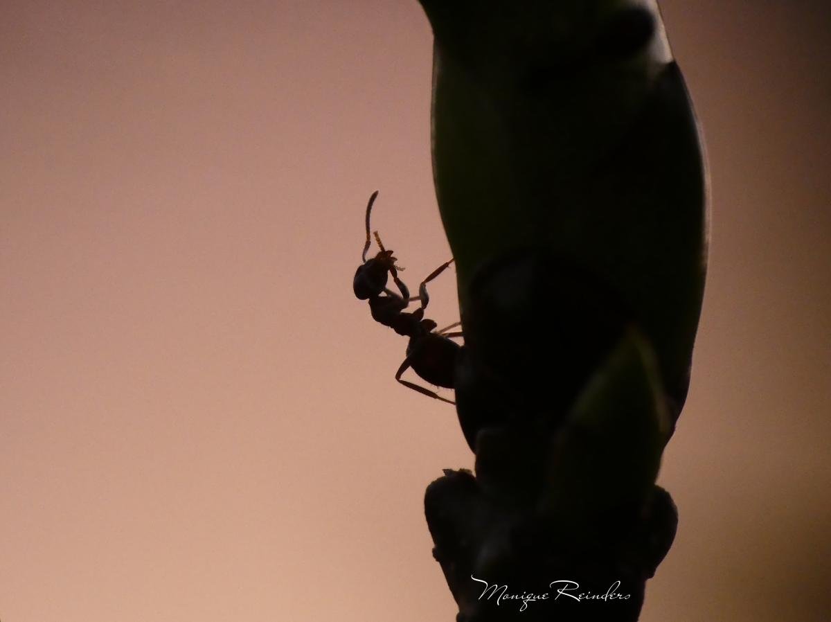 Het silhouet van een mier vastgelegd aan het begin van de avond.