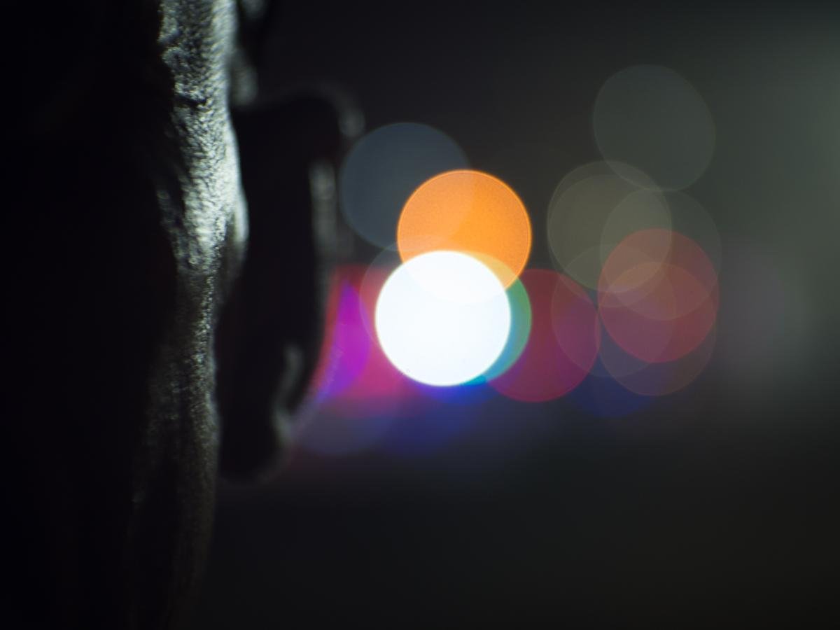 Ik en mijn ouders liepen in de avond op het strand en mijn vader stond ineens stil naar de zee aan het kijken, een grote felle lamp scheen op hem met het licht van de strandtentjes op de achtergrond.