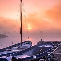Mistige zonsopkomst aan de Rijn in Wageningen.