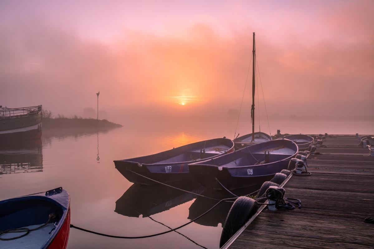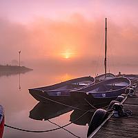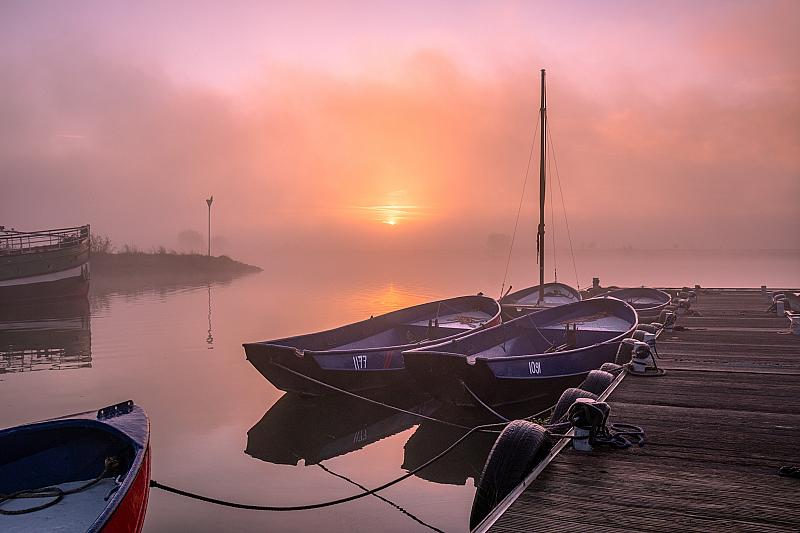 Mistige zonsopkomst aan de Rijn in Wageningen.
