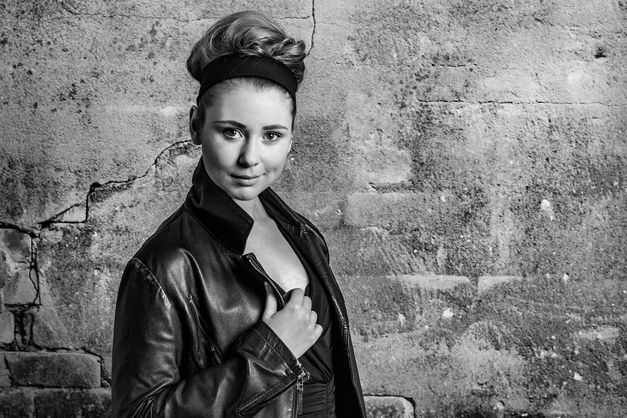 Model geschoten voor een vinyl achterwandje 150x150 cm met een muur printje