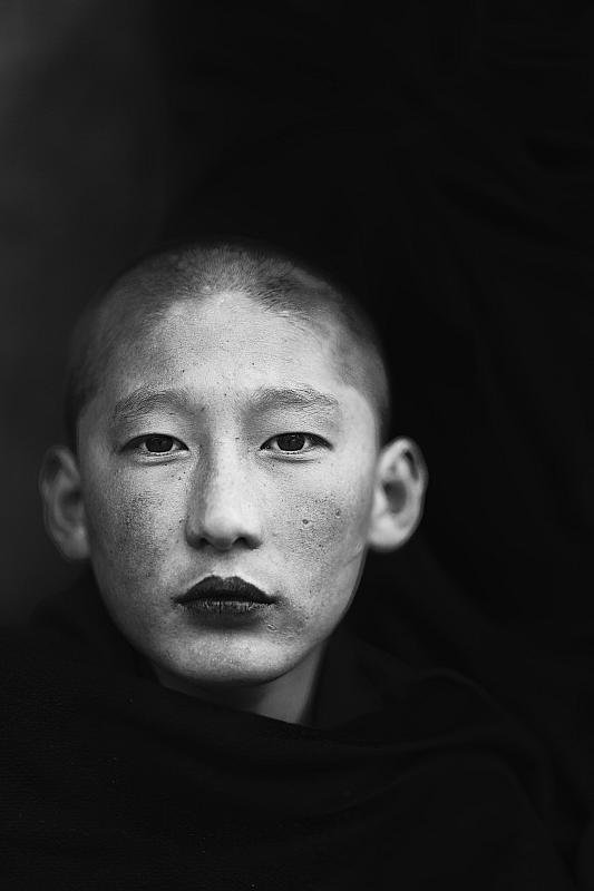 Jonge monnik in een klooster nabij Paro, Bhutan.