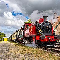 De stoomlocomotief van de plaatselijke stoomtrein rangeert bijna nooit op dit station. Echter tijdens de proefrit van deze dag wel. Na twee jaar kon er eindelijk weer gestoomd worden met deze trein.