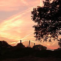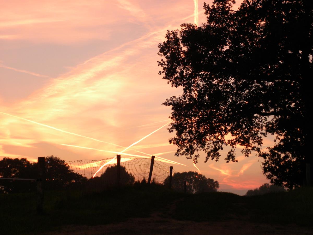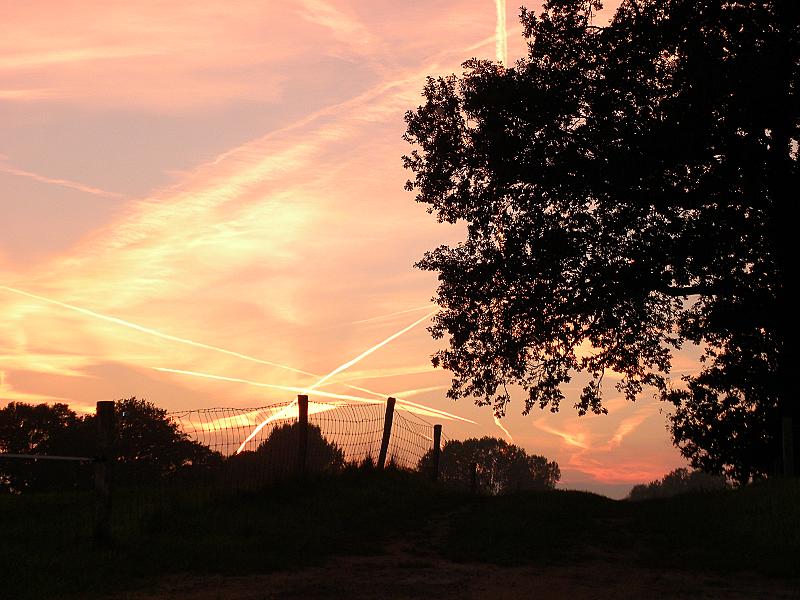 mooie natuur met de vliegtuig strepen savonds
