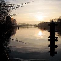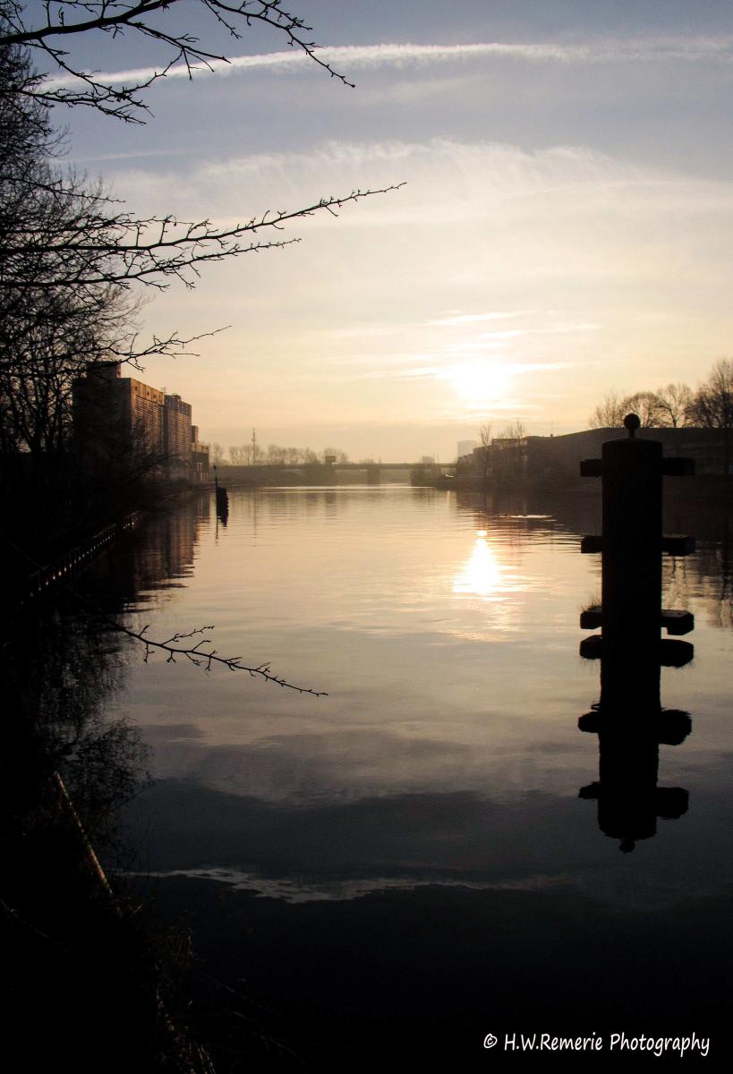 De foto is gemaakt onder de Gerrit Krol brug in Groningen, vlak naast het water. Op een mooie, maar koude morgen.