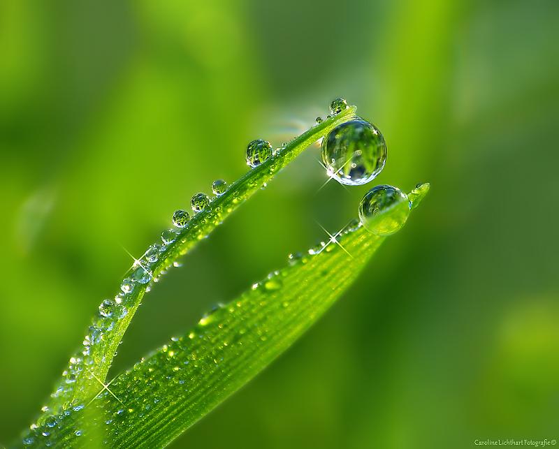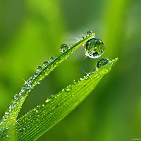 Een tot onze verbeelding sprekend symbolisch beeld. Twee grassprieten met dauwdruppeltjes.