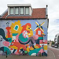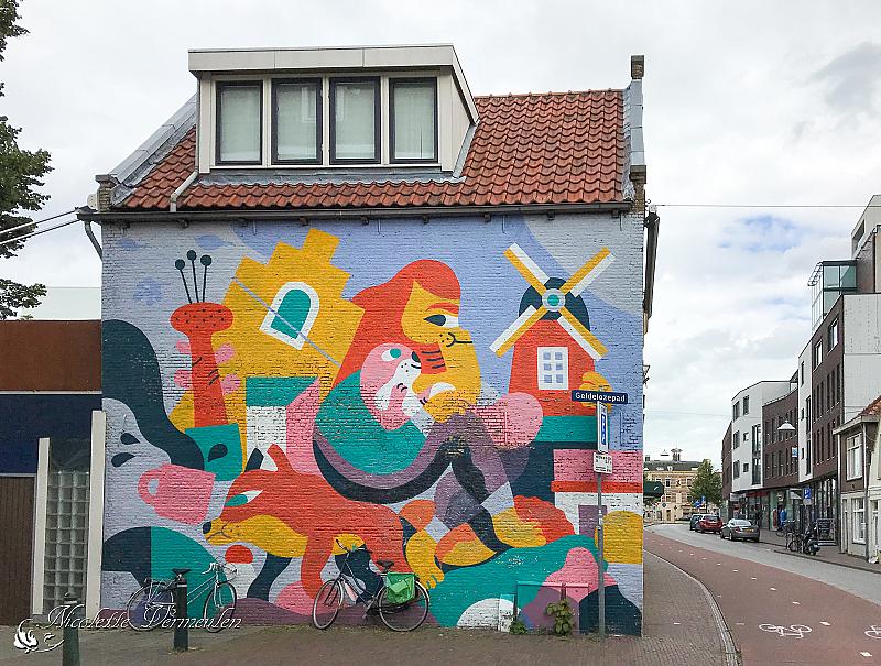Vrolijke kleuren op de zijkant van een huis in het centrum