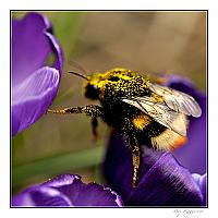 Bij het uitkomen van de crocussen waren de eerste hommels gretig aan het verzamelen. Vol stuifmeel vlogen ze van bloem naar bloem.