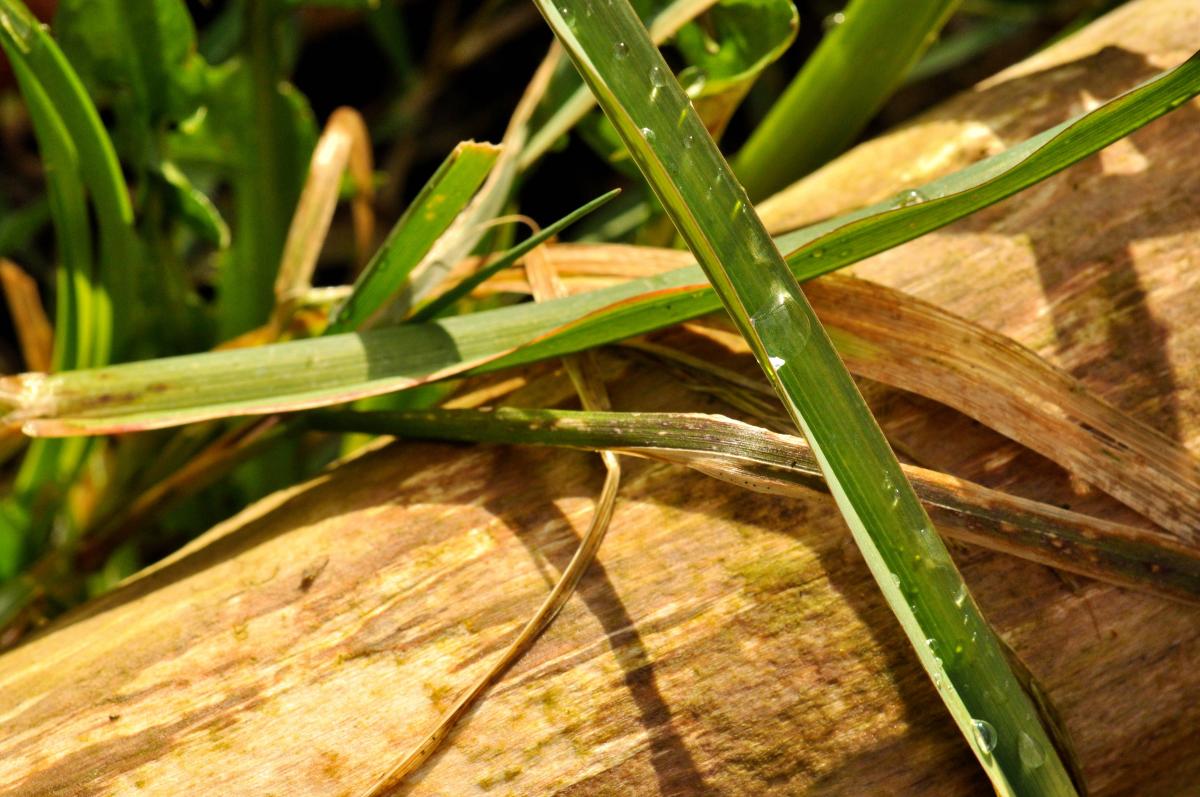 Mooie druppels op het gras na een hele tijd regen.