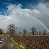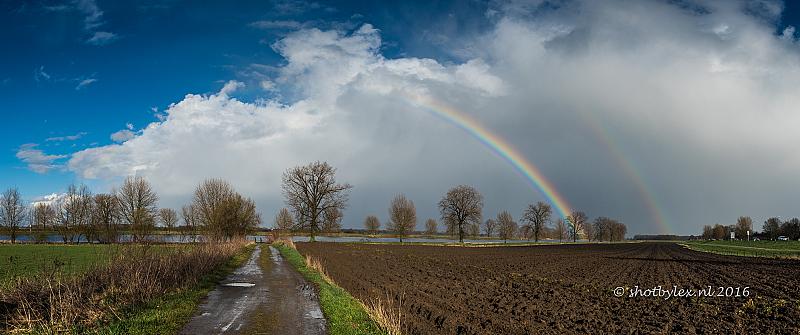 Komt zonneschijn en een regenboog. Panorama van 6 foto's uit de hand genomen!