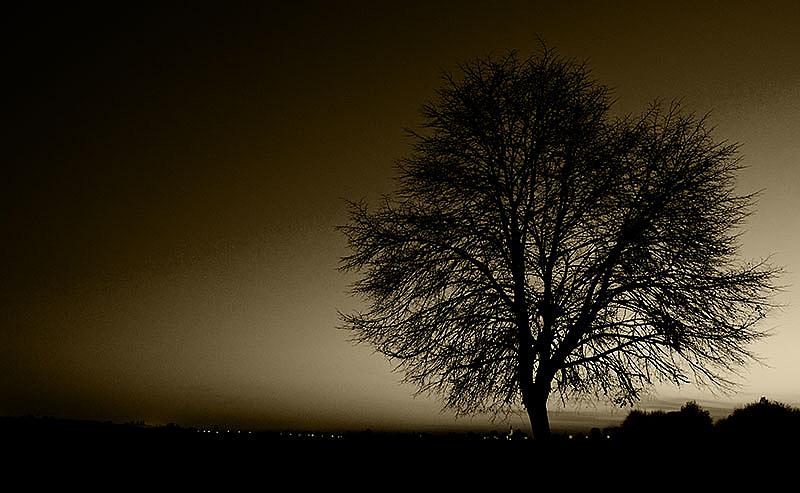 De foto werd gemaakt met een Nikon D7000. Er werd een lange sluitertijd van 13 seconden gebruikt om de ondergaande zon goed te laten uitkomen achter de boom. Achteraf werd er een zwart-wit omzetting gedaan.