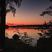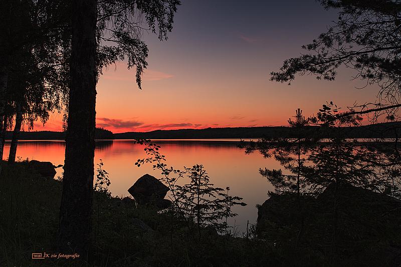 Een prachtig land om op vakantie te gaan, Zweden. Prachtige natuur, mooie meren, en heel veel licht in juni, als de zon niet echt ondergaat. In het midden van Zweden, een meer en een ondergaande zon.....sprookjesachtig mooi!