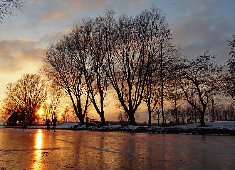 Toch nog even een korte maar strenge winter gehad dit jaar, schaatsers genoten met volle teugen en ik kon weer genieten van hen met op de achtergrond de ondergaande zon die scheen op het natuurijs.