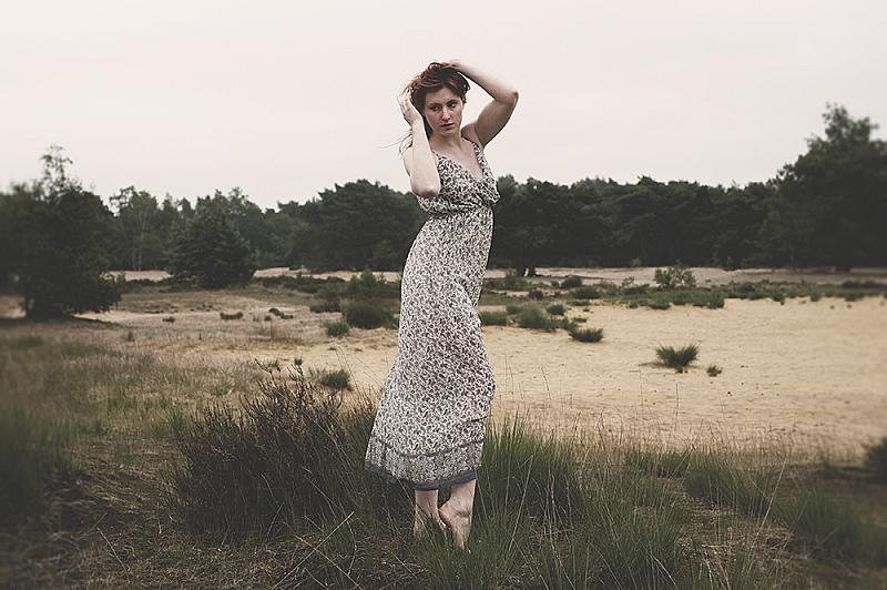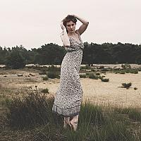 Mooie combinatie tussen de kleuren van de natuur met het jurkje. Model: Sky