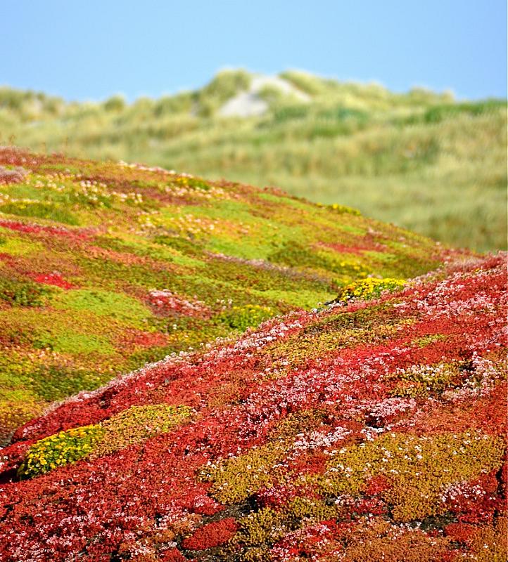 Op Ameland zag ik deze kleurrijke dakbedekking, bedekt met allerlei mossen en planten, dit was prachtig om te zien!