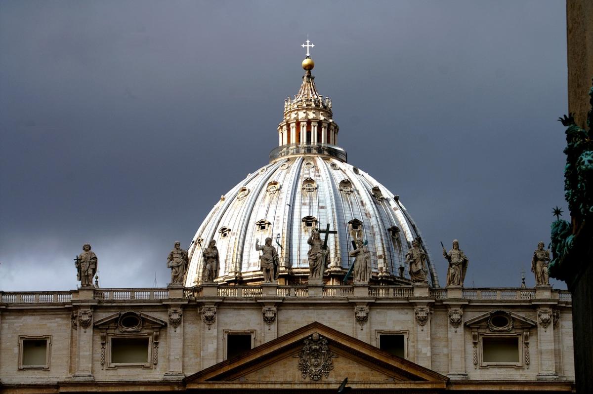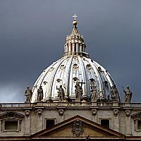 Een prachtige natuurlijke zonneschijn op de Sint-Pietersbasiliek te Rome tijdens de audiëntie van de Paus op 4 maart 2015