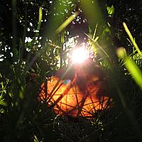 een spannende foto gemaakt op de grond van een bosje, veel verschil tussen scherp en wazig in de foto