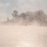 Nederrijn met sneeuw en mist