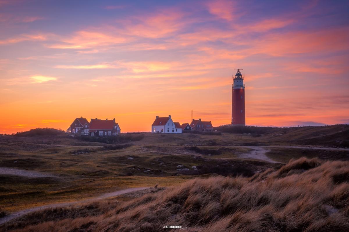 De Texelse vuurtoren net na zonsondergang. De kleuren zijn schitterend en het licht heerlijk zacht.