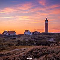 The Texel lighthouse just after sunset. The colors are magnificent, and the light is beautifully soft.