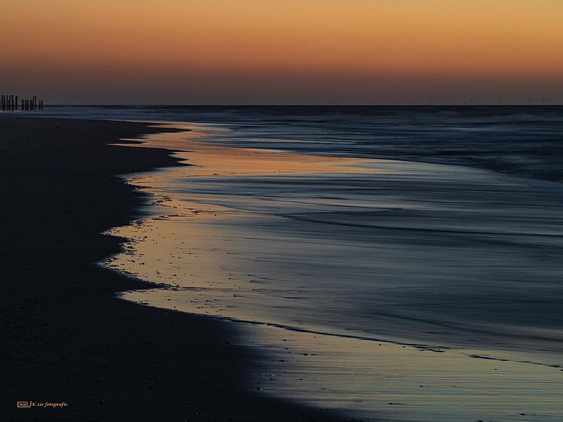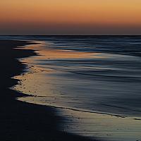 De zon was net ondergegaan, afgaand water, het prachtige oranje licht dat net nog op het natte strand te zien was.....