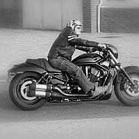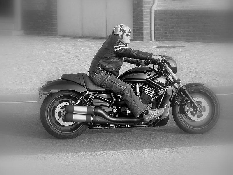 Zomeravond op de Boulevard; kijkend naar wat voorbij komt vang ik deze stoere motorrijder.