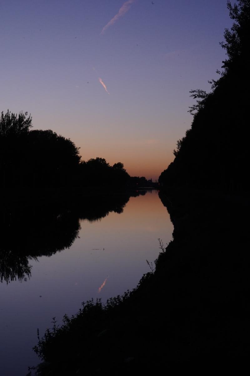 Water, mirror, nightfall,optical illusion