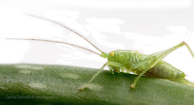 De jonge sabelspringhaan. Deze worden Nimf genoemd.