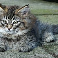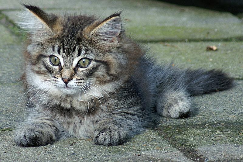 Uit ons eerste nestje kregen we 2 Noorse Boskatkittens, 1 daarvan was Noa. Hier voor het eerst naar buiten.