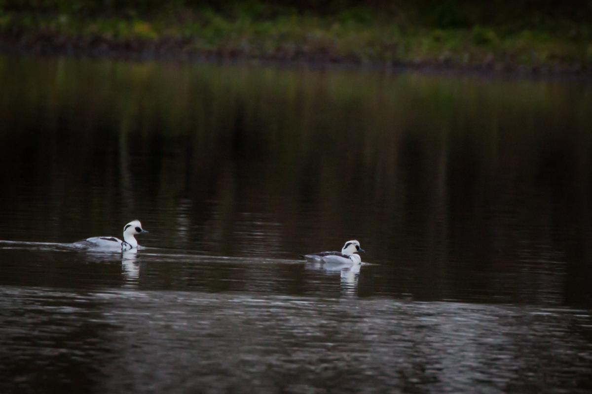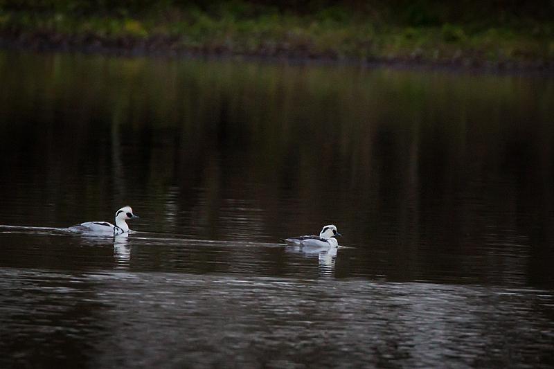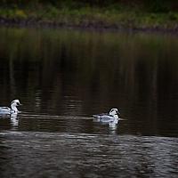 twee nonnetjes in gezelschap van andere eenden in late namiddag