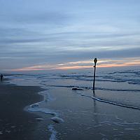 De Noordzeekust tijdens zonsondergang in Kijkduin.
